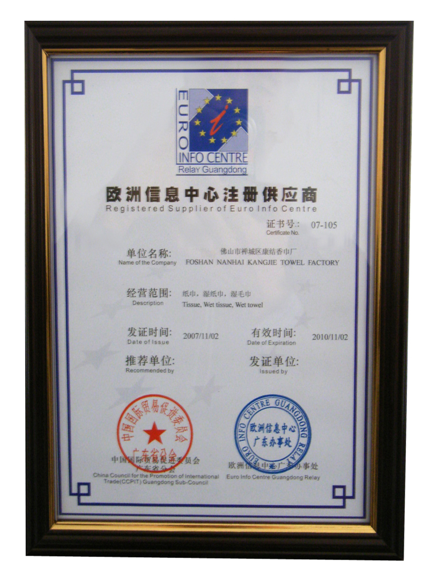 佛山市?城?康之洁香巾厂是国内最早生产湿纸巾的企业之一,有多年的生产经验,质量稳定,技术成熟,产品远销世界各地,我厂荣获中国贸促会颁发“欧洲信息中心注册供应商。”现已开发出一系列康洁牌湿纸巾产品,有一次性单片独立包装湿纸巾、湿面巾、湿毛巾,30片、70片罐装湿纸巾系列,8片、10片、15片、30片、50片、80片软包装湿纸巾系列,其中包含:常用多用途型、抗菌型、婴儿专用型、美容卸妆型、卸指甲油专用型等多种型号。还有各种专用湿纸巾产品如玻璃清洁湿巾、防雾湿巾、厨房清洁湿巾、家具清洁湿巾等。另外还生产手帕纸、面巾、婴儿隔尿垫巾、美容脸膜、眼膜、吸油面纸等产品。